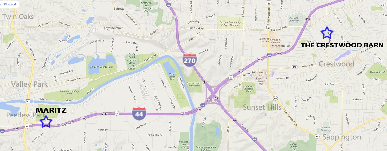 From Highway 141. Take Hwy 141 toward I-44. Take Interstate 44 East and follow directions above, “From the West”.